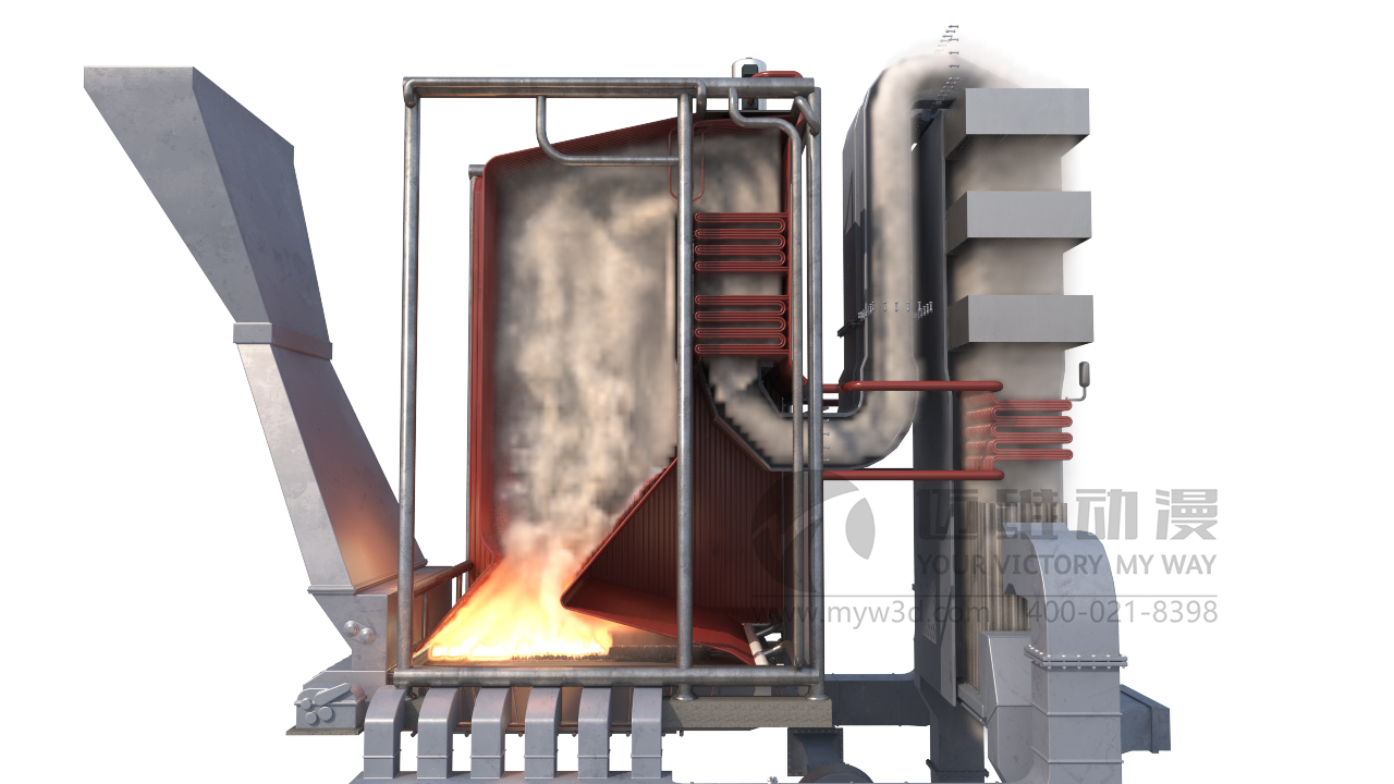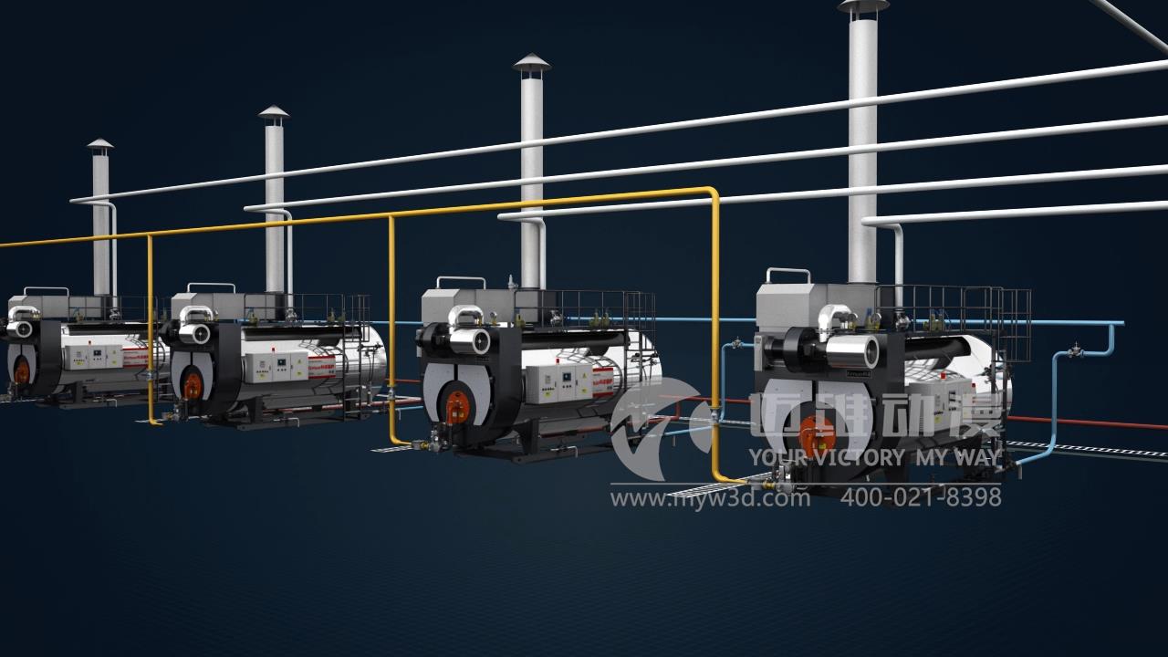 工業(yè)鍋爐在我國生產生活中占據重要地位。目前,在我國工業(yè)生產中,輕紡和化學工業(yè)是大量用熱的部門。而未來輕紡工業(yè)、能源工業(yè)、建材、建筑業(yè)、化學工業(yè)、冶金工業(yè)、交通運輸業(yè)和軍工部門等仍將是工業(yè)鍋爐的主要市場。 邁維動漫在接收到客戶的動畫需求咨詢后,會立即組織技術人員對鍋爐的基本知識進行學習。根據客戶的需求將蒸汽鍋爐的結構、功能、優(yōu)勢等設計制作成統(tǒng)一標準的3D視頻。