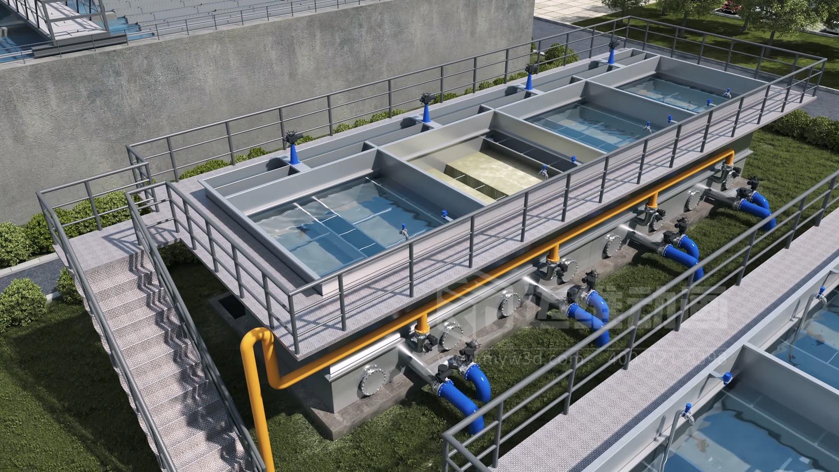 在二次供水與水處理行業(yè)的水質(zhì)凈化環(huán)節(jié)中,絮凝反應(yīng)裝置是保障出水水質(zhì)達(dá)標(biāo)的核心設(shè)備。它通過投加絮凝劑,使水中懸浮雜質(zhì)凝聚成大顆粒礬花,為后續(xù)沉淀、過濾工序奠定基礎(chǔ)。但絮凝反應(yīng)的動(dòng)態(tài)過程、裝置內(nèi)部的水流擾動(dòng)機(jī)制、礬花形成與沉降的核心原理,僅靠圖紙、文字或?qū)嵨镎故倦y以直觀呈現(xiàn)。針對(duì)這一行業(yè)痛點(diǎn),絮凝反應(yīng)裝置三維動(dòng)畫憑借精準(zhǔn)的可視化技術(shù),成為二次供水項(xiàng)目宣傳、技術(shù)培訓(xùn)、工程招投標(biāo)的重要抓手。